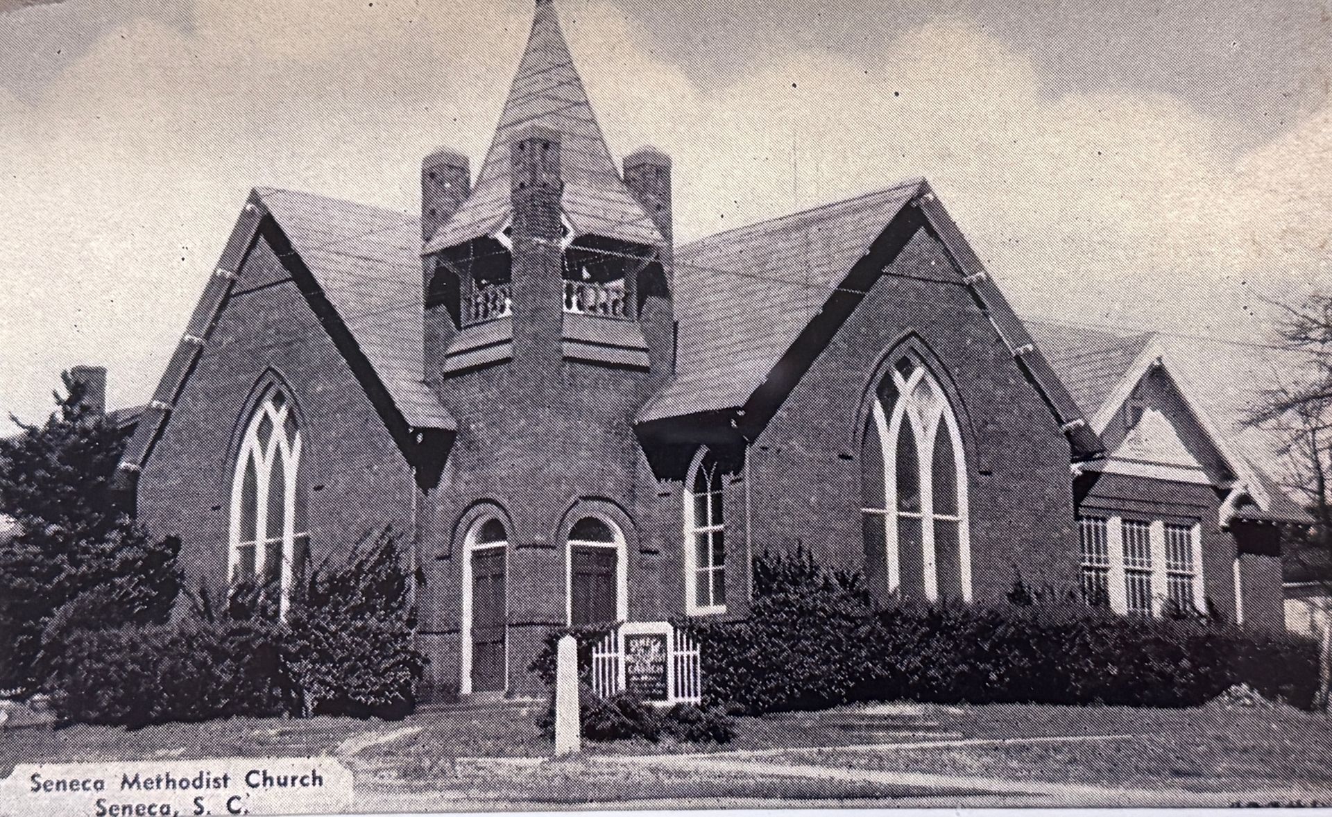 The new church, which would become Seneca Methodist Church South was built on the same site and with red brick. The brick cost $3.50 per thousand delivered. The cornerstone was laid in 1904, and the cost was $3,000. In 1924 the Annex was built and dedicated on February 9, 1941, and in 1951, the name was changed to St. Mark Methodist Church. In 1958, the church and its annex were sold to Hugh and Rachael Brown who founded Brown’s Funeral Home.